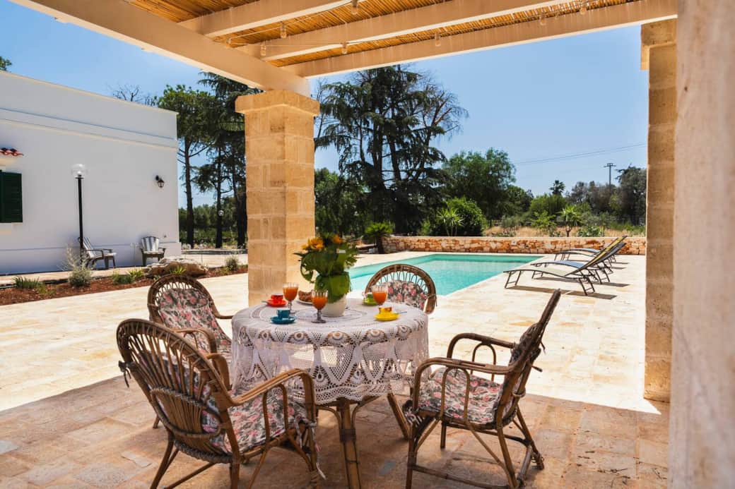 Immersa nella quiete della campagna pugliese, questa villa indipendente con piscina privata è la scelta ideale per chi cerca relax, privacy e autenticità. La proprietà è circondata da un ampio giardino mediterraneo con gazebo, zone relax e barbecue in pietra, perfetta per famiglie o gruppi di amici che desiderano vivere la Puglia in totale comodità. All’interno, l’arredo racconta la tradizione locale: mobili in legno e dettagli vintage, ceramiche pugliesi e tessuti dai colori naturali. L’alloggio Esterni: - Piscina privata con solarium e doccia esterna - Ampio giardino mediterraneo con gazebo arredati e barbecue Ingresso e zona giorno - Dal gazebo principale si accede direttamente alla cucina, moderna e completamente attrezzata. Accanto, un bagno di servizio (senza doccia) offre praticità. - La zona giorno, inoltre, si compone : un soggiorno con camino, TV e salottino, aria condizionata. A disposizione anche un secondo bagno completo con doccia. Zona notte Un disimpegno conduce alla zona notte, composta da: - 3 camere matrimoniali climatizzate, ciascuna con arredi unici (testate in ferro battuto, mobili intarsiati, scrittoi e specchi antichi) - Biancheria da letto e set asciugamani inclusi Gli ospiti avranno l’intera villa in esclusiva, compresi piscina, giardino e aree relax. La proprietà garantisce riservatezza e massima indipendenza. Parcheggio privato interno. Durante il soggiorno potrete arricchire la vostra vacanza con servizi esclusivi, prenotabili su richiesta: - Degustazioni in masseria con prodotti tipici pugliesi e vini locali - Cooking class per imparare i segreti della cucina tradizionale - Chef a domicilio per pasti privati direttamente in villa (colazione, pranzo e cena) - Massaggi in struttura, per momenti di relax assoluto La villa si trova in una Contrada di Francavilla Fontana, zona tranquilla immersa nel verde. A pochi minuti troverete ristoranti tipici, mercati locali e il centro storico con i suoi palazzi barocchi. Centro storico di Francavilla Fontana: 5 minuti in auto Servizi essenziali: supermercati, farmacie, bar e negozi si trovano a breve distanza, così come ristoranti tipici dove gustare la cucina pugliese La villa si trova in una posizione strategica per esplorare sia il Salento che la Valle d’Itria, due delle zone più affascinanti della Puglia. L'aeroporto più vicino è l'aeroporto di Brindisi, circa 30 minuti. Spiagge - Mar Ionio: spiagge di sabbia bianca e mare cristallino a Torre Lapillo, Porto Cesareo, Punta Prosciutto (30–40 minuti). - Adriatico: scogliere e calette suggestive a Torre Guaceto (riserva naturale WWF), Costa Merlata, Torre Pozzelle (25–35 minuti). Borghi della Valle d’Itria (20–30 minuti) - Ostuni, la “Città Bianca”. - Ceglie Messapica, capitale gastronomica, famosa per i suoi ristoranti tipici. - Cisternino, con i caratteristici forni a carne e le bombette. - Martina Franca, elegante città barocca. - Locorotondo, uno dei borghi più belli d’Italia. - Alberobello (40 minuti), Patrimonio UNESCO per i suoi trulli unici al mondo. Salento e città d’arte - Lecce (45 min): la “Firenze del Sud”, capitale del barocco. - Brindisi (30 min): porto sul mare Adriatico con lungomare e centro storico. - Gallipoli (1h) - Polignano a Mare (1h) - Monopoli (1h) Esperienze naturali e culturali - Grotte di Castellana (50 min), uno dei complessi carsici più spettacolari d’Italia. - Torre Guaceto, riserva naturale perfetta per snorkeling e trekking. - Cantine e masserie nei dintorni, per degustare vini e oli pugliesi. - Percorsi in bicicletta tra gli ulivi secolari e le contrade rurali.